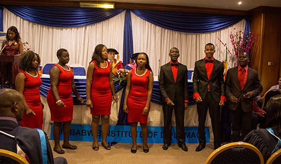 3月6日,津巴布韦大学孔子学院中文合唱团应邀参加津巴布韦外交学院2015届当代外交和国际关系专业毕业生的毕业典礼,并在典礼上演唱中绍双语歌曲。出席此次毕业典礼的除津巴布韦外交学院领导,还有驻津的埃及大使、希腊大使及法国大使。