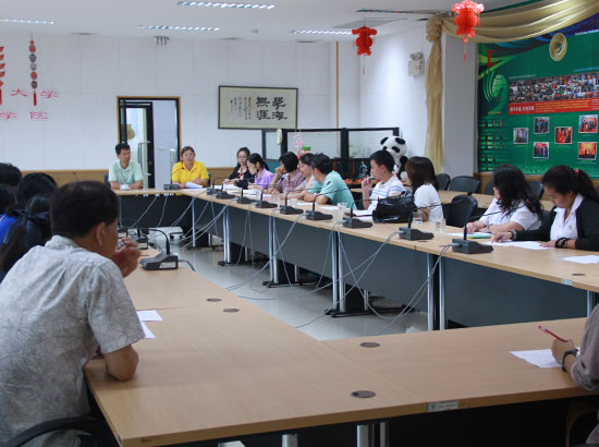 会议中,吴院长介绍了孔子学院2015年度赴华夏令营的整体情况以及日程规划安排,并简要介绍了广西和广西大学的地理位置和区位特色。谢瑞蓉主任和柯绣球老师对赴华夏令营的准备事项进行了详细说明和讲解,包括行前准备、登机、入境以及在华学习和生活等方面。随后,根据以往的夏令营工作经验与学员们进行交流,详细回答了学员们提出的相关问题。