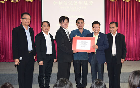 据悉,玛哈沙拉坎大学孔子学院在隶属于加拉信地方管理机构的八所学校开设了教学点和三个汉语中心,共派出八名汉语教师志愿者。作为首批支持建设“孔子园”单位,加拉信地方管理机构此次捐赠十万泰铢用于孔子园项目之“加拉信园”的建设。
