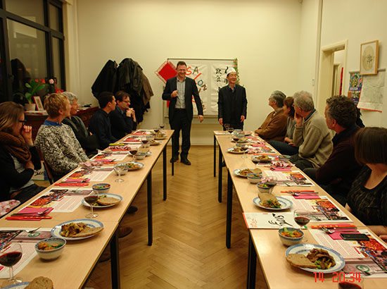 现场嘉宾细细品尝了由孔子学院中方院长张思锐主厨烹饪的羊肉米粉汤等菜品,对中国饭菜赞不绝口。晚宴结束后,来宾们参观了布鲁塞尔孔子学院的教室、会议室、大厅陈列展品和新建成的图书馆,孔院设备和办学规模给他们留下了深刻印象,不少居民希望参加孔子学院的厨艺学习班,并打算让孩子加入儿童汉语零起点班。