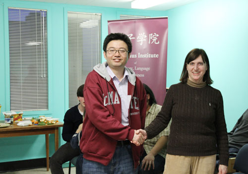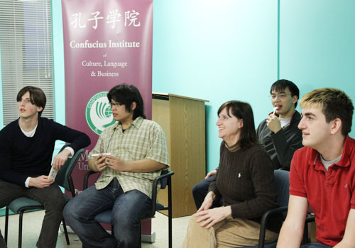 除了饺子以外,孔子学院的老师们还为这个活动准备了一些小游戏,抢椅子游戏让大家抢得不亦乐乎;猜词、传话等游戏又让同学们在娱乐的同时又复习了刚刚学到的语言知识,一举两得。