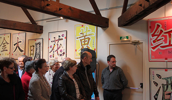 3月21日,法国普瓦提埃大学孔子学院84岁学生高路易的“汉字展”在法国Chasseneuil du Poitou拉开帷幕,吸引逾百名观众参观。