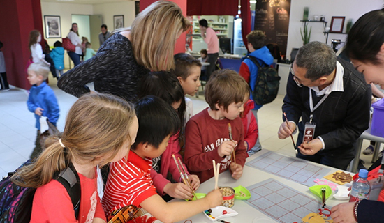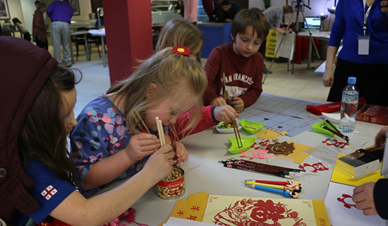 活动面向QSI国际学校全校师生举行,分主题展示了中国书法、中国结、太极功夫、民间剪纸、中华美食、京剧等内容;毛笔、筷子、泥塑、剪纸、脸谱等中国元素受到极大青睐和喜爱。