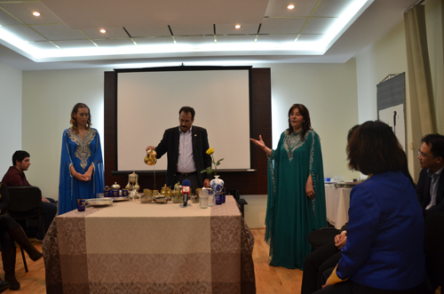 阿拉伯文化中心老师正在进行摩洛哥茶艺表演