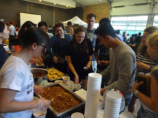 3月19日,南非斯坦陵布什大学国际周之国际食品夜活动在学术活动中心开幕。由来自五大洲的近二十个国家的师生参与此次活动。中国、南非、德国、美国、澳大利亚等国家的食品集体亮相,给师生们提供了一场世界美食之旅。