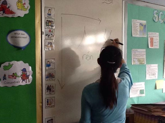 一天的汉语体验课进行下来,Park Hill Primary School的学生基本上都已经会说“你好”,高年级的学生还学会了几个简单汉字的书写。