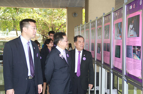 3月26日,“诗琳通公主殿下访华题词展暨朱拉隆功大学孔子学院成立八周年成果展”开幕仪式在朱拉隆功大学玛哈·扎克里·诗琳通楼举行。诗琳通公主殿下在朱大孔子学院泰方院长马克仁博士、中方院长韩圣龙博士、高级顾问傅增有教授陪同下参观了展览。