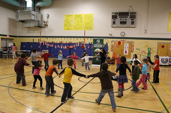 孔院志愿者教师带美国小学生跳集体舞