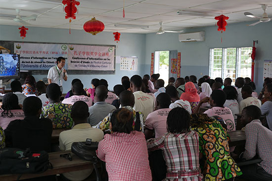 3月25日,贝宁阿波美卡拉维大学孔子学院举行HSK考试暨孔子学院奖学金专题讲座,来自孔子学院各教学点的一百多名学生参加该讲座。