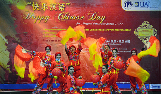 3月25日,印尼阿拉扎大学孔子学院在该大学校园举办主题为“快乐汉语——Happy Chinese Day”的开放日活动。Sunpah Pemuda高中、Yapemri Depok职业高中等6所学校的学生,印尼国家警察总部语言学校,印尼国防部培训中心学员及阿拉扎大学中文系师生等200多人参加了活动。