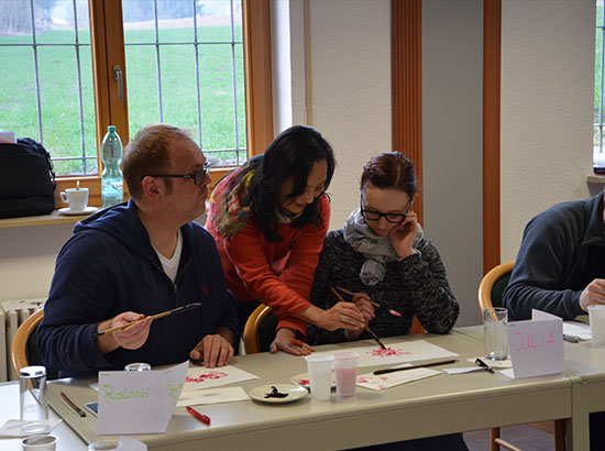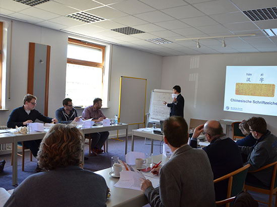 本期“语言村式”汉语强化班是慕尼黑孔子学院的一次全新教学尝试,借鉴沉浸式教学法,将语言教学与文化活动融为一体,开展全天候的汉语强化训练,先后有10名教师加入教学工作。12位学员除了每天6小时的汉语学习之外,还有丰富多彩的中国文化体验课程以及各种实用性培训。例如广播体操、气功晨练、书法绘画、中国棋牌体验、中国电影赏析、跨文化交际讲座以及中国互联网应用讲座等等。有学员表示,汉语强化班拉近了他们与中国的距离,希望以后能去中国进一步体验中华文化。