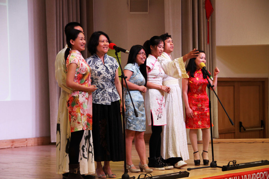 汉语教师熊玉环在中国国际广播电台的支持下,精心准备了视频短片,现场教观众学说“你好”、“民族”等中文词句。汉语教师董豪在舞台备上文房四宝,邀请观众亲身感受中国书法的美妙;汉语教师易冬冬表演的太极拳和太极刀将刚与柔的结合展现得淋漓尽致,让观众体验到了中华武术的魅力;来自大特大学孔子学院的七位汉语教师们一同用歌声传递了中国人民的热情与祝福。在节目表演中,穿插设计了“中国元素猜猜看”和“歇后语连线”等各种游戏,激起了观众了解中华文化的兴趣。文化节还邀请了保加利亚红鹤舞蹈团带来了精彩的民族舞蹈。表演结束后,观众们纷纷与汉语教师们合影留念,表达了他们对学习汉语的兴趣和意愿。