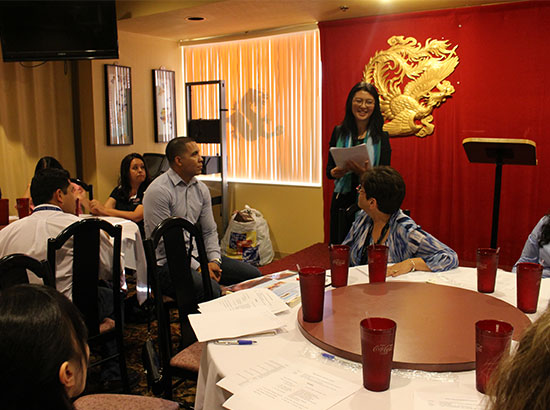 来自图桑各学区的孔子课堂的校长们对他们在办孔子课堂过程中学校的办学效果,汉语教学及孔子课堂管理等问题进行了热烈交流。Walden Grove高中校长Teresa Hill讲到,自从去年建立孔子课堂以来,学习汉语的高中生已经有五十人多人,分两个年级开展汉语教学。她说,非常开心和激动看到自己的学生参加由孔院举办的春晚,看着孩子们用汉语来表演中国的歌曲舞蹈。他们学校所在的社区家长也由此对汉语教学十分重视。