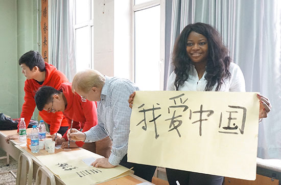 英国老师书写“我爱中国”