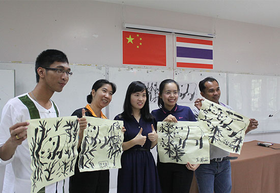 培训中,孔子学院共安排三次讲座,分别是汉字的历史与书法、从中泰成语对比看中泰文化异同和中国文化——历史篇和三次讲座都用汉泰双语教授。
