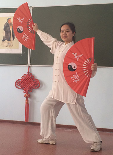 4月2日,俄罗斯阿穆尔国立人文师范大学孔子学院在5周年庆典系列活动——中华文化零距离体验季中开展“中俄舞——武间的文化魅力辉映”体验活动。