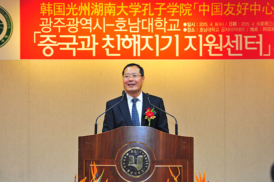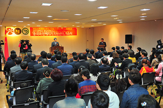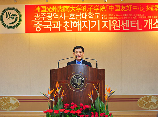 4月8日,由韩国光州广域市政府与湖南大学孔子学院联合建立的“中国友好中心”在孔子学院举行揭牌仪式。广域市市长尹壮铉、中国驻光州总领事馆总领事王宪民、韩国湖南大学校长徐康锡等光州各界名人政要、华人华侨代表、中国留学生代表及韩国媒体人士200余人出席。