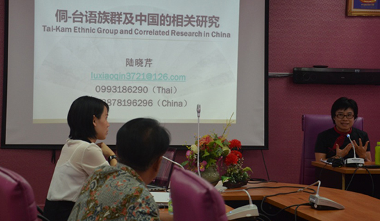 4月9日,泰国玛哈沙拉坎大学孔子学院与该大学音乐学院联合举办了中泰语言文化讲座“侗-台语族群及中国的相关研究”,广西民族大学副教授、玛哈沙拉坎大学泰东北文化艺术研究院访问学者陆晓芹为主讲人。