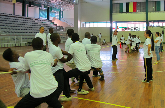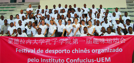 4月9日,莫桑比克蒙德拉内大学孔子学院在校综合体育馆举办了首届趣味运动会,共有60余名学生积极参与,赛场气氛十分热烈。
