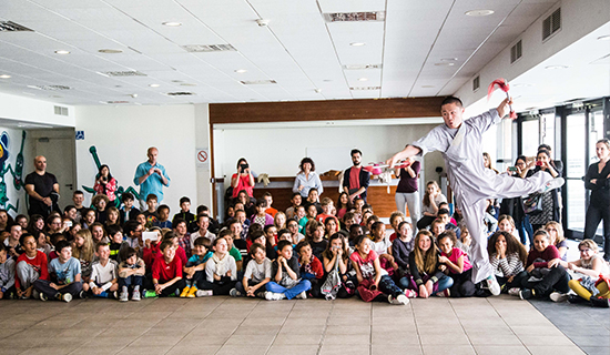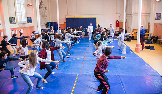 此外,蒙彼利埃孔院还组织参加了第十届蒙彼利埃武术节,此次武术节汇集了当地各类武术的精英和爱好者,十多个俱乐部先后登场表演了韩国空手道、日本剑法、马来武术“希拉”、咏春拳、法国少林太极拳及儿童少林功夫;当晚最耀眼的明星当属三位少林师父,他们分4次出场,演练了少林拳术、棍术、枪术、刀术、剑术和太极等精彩节目。中国驻马赛总领馆总领事余劲松出席活动并发言,当晚观众超过500人。在孔院的安排下,三位少林师父还接受了当地AVIVA电台的采访,向法国民众介绍少林与中国武术。