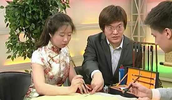 4月11日,俄罗斯新西伯利亚国立技术大学孔子学院志愿者刘钦和韩波受邀做客新西伯利亚电视台(Hovosibirsk TV),用俄语向观众们介绍中国书法艺术。