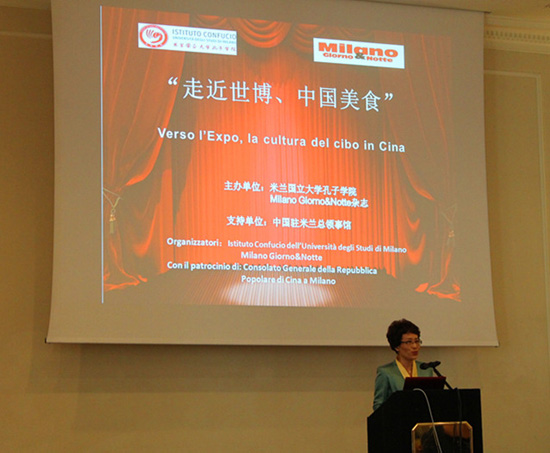 之后,米兰国立大学孔院理事、汉学家Clara Bulfoni教授介绍了由米兰国立大学和米兰国立大学孔院共同合作编写的米兰世博会《意英中食品与营养学辞典》。该词典共有四个主题,分别为烹饪,营养,食品安全和生物技术,与米兰世博会“滋养地球、生命的能源”主题相契合。