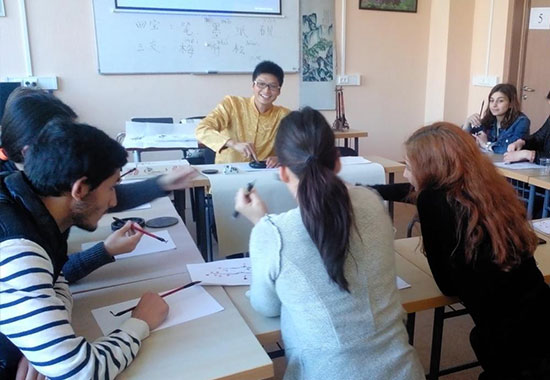 近期,格鲁吉亚第比利斯自由大学孔子学院进一步完善“中国传统文化”精品课程班,在已有的“中国功夫班”、“太极班”基础上,增设“中国书法班”,孔子学院专职汉语教师左富强老师负责授课。