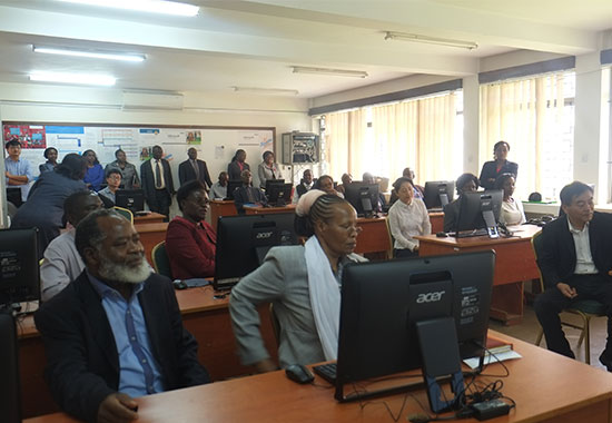 参观结束后,参与人员到“Nacece Resource Centre”进行座谈会。来自内罗毕大学孔子学院教师培训班的许多学员用学会的汉语向大家打招呼。郭院长指出,汉语在国际交往中发挥着越来越重要的作用,期待未来更多的合作,特别是在汉语教学大纲的编写和教材的编纂方面,希望通过双方合作,推进汉语教学在肯尼亚的推广。