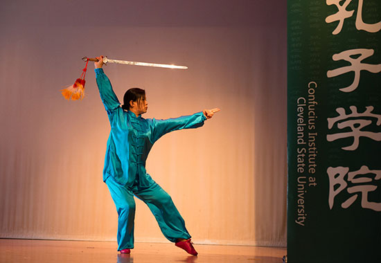 克利夫兰州立大学孔子学院崔艳华老师表演剑术