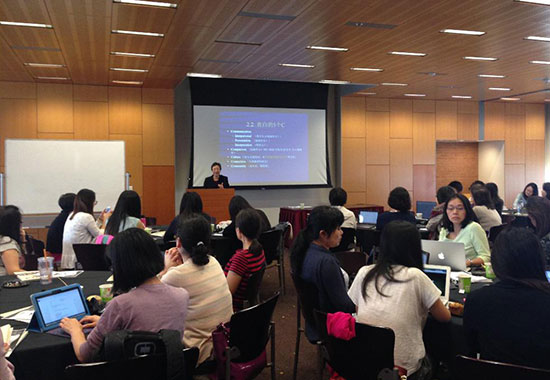 梁教授自2002年起担任弗吉尼亚大学东亚语言学院中文项目主管,并从2006年开始担任弗吉尼亚大学在上海的中文项目主管,拥有丰富的教师培训和学生教学方面的实践经验。首先,她介绍了自己的求学和工作经历,并简要介绍了两个教学基本理论:语言的形式与功能,5个C理论。她以一篇课文为例给各位教师展示了怎么将这两个基本理论放到实际教学中去使用和实践,并详细阐释了备课第一步应该依据哪四个基本问题。梁教授精心挑选出另一篇课文,组织与会的各位老师思考和讨论如何备课。