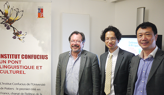 从左至右:孔院外方院长Alain Mignot,李李国博士和中方院长戴天华