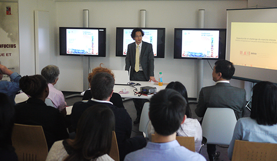 随着中国经济的高速发展,如何满足社会的商务、住宅需求,同时尊重“人和环境”和谐发展等问题已成为重要课题;中法在该领域有着广泛合作,李博士是活跃于该领域的佼佼者。他在讲座中介绍分析了夏邦杰、安德鲁等法国建筑设计大师在中国的作品范例,揭示了中西文化在建筑艺术上的碰撞和交融。李博士在中国珠海横琴岛的“山脉田园—水脉都市”项目、成都“水晶蜀道”项目上体现出来的人与自然、都市与生态环境美妙和谐的设计理念,引起了现场观众的浓厚兴趣。讲座结束后,大家纷纷提问,进行了热烈的讨论和交流。