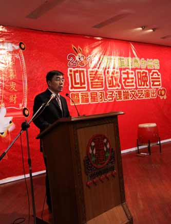 福星孔子课堂理事长吕振膑先生发表了精彩讲话。在发言中提到:福星孔子课堂的汉语教学经过努力,发现迅速,是一项功在当代,利在千秋的大事。