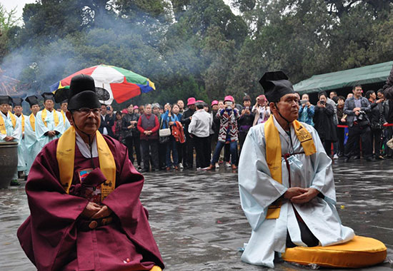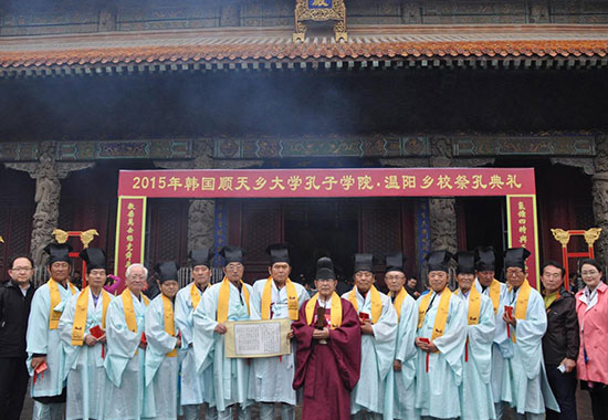 4月18至19日,顺天乡大学孔子学院组织韩国温阳的乡校负责人、儒林元老等16人赴山东曲阜,分别在孔庙、孟庙等地举行祭孔祭孟仪式。