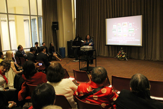 4月20日,联合国总部秘书楼的Express Bar,一片喜气洋洋,热闹非凡,第6届联合国中文日在中国传统“谷雨”时节拉开了序幕。中国驻纽约总领馆教育组的徐永吉参赞,常全生领事、于兴国领事、程序领事,联合国中文组组长何勇博士,中国民间艺术家协会副秘书长周燕屏及11名民间艺术大师、在联合国中文组学习汉语的100多名国际雇员,及众多联合国的工作人员和外交人员参加了此次文化活动。