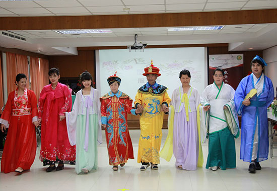一首合唱《橄榄树》拉开此次汇报演出的序幕,学员们声音嘹亮,演唱真诚,其后演唱的《女驸马》令参与人员眼前一亮。诗朗诵《乡愁》充分展现了学员们正音朗读课的教学成果,学员们感情细腻,发音标准,配合着轻缓流畅的音乐,一缕思乡之情弥漫开来。志愿者贾丽娟老师则带领学员上演一场穿越时空的服装秀,最精彩的节目当属压轴表演的《小苹果》,学员们在热情的舞蹈中展现青春活力,每个人沉浸在动感的音乐中。