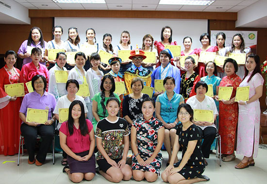 4月26日,泰国农业大学孔子学院举办教育部基教委本土教师培训汇报演出。教育部基教委项目官员吴泰湾、孔子学院中方院长高惠敏、孔子学院公派教师刘蕾、志愿者教师以及25位培训学员出席结业式。
