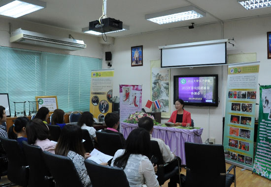 孔子学院中方院长严钰结合2014年孔子学院在泰北各学校开展汉语项目及活动的情况,向与会教师们介绍了孔院2015年的工作计划以及特色项目,并听取了各校教师代表的意见。