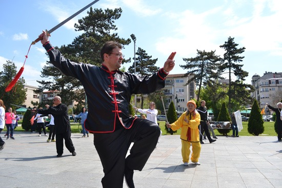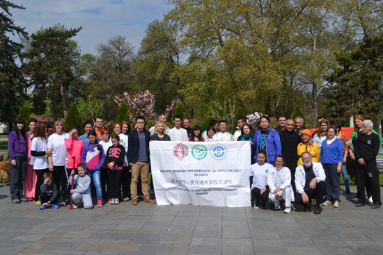 4月25日上午,马其顿圣基里尔•麦托迪大学孔子学院在公园广场举办“世界太极日”纪念活动,中资机构代表、华人华侨代表,当地太极拳协会会员、孔子学院师生等150多人参加活动