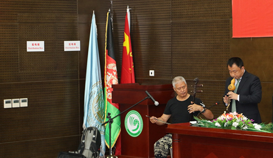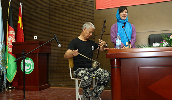 首先由林女士介绍他们夫妇的旅行经历,阿富汗是他们旅行的第68个国家;随后,季教授以二胡演奏了一曲《茉莉花》,紧接着一曲奔腾欢快的《赛马》又把大家带入广袤无垠的大草原。季教授的演奏令很多初识中国民乐的阿富汗观众惊叹不已。