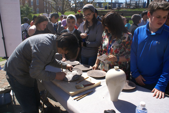 4月16日,马里兰大学孔子学院邀请河北省的十大民间工艺大师举办了“中国民间艺术展”,华盛顿、马里兰、弗吉尼亚等地近十所中小学师生前来参观交流。