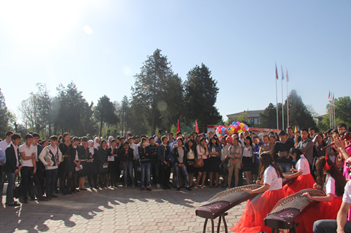 4月28日,奥什国立大学孔子学院参加奥什国立大学开放日活动,奥什市教育部领导、当地中学生及家长共千余人前来参观。