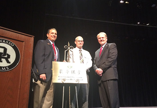4月29日,美国俄克拉荷马大学孔子学院下设奥瓦索高中(Owasso High School)孔子课堂举行揭牌仪式。奥瓦索高中校长Matt Roberts,学区总监Ogilvie,孔子学院外方副院长Rex Buett以及该校300 余名师生参加仪式。