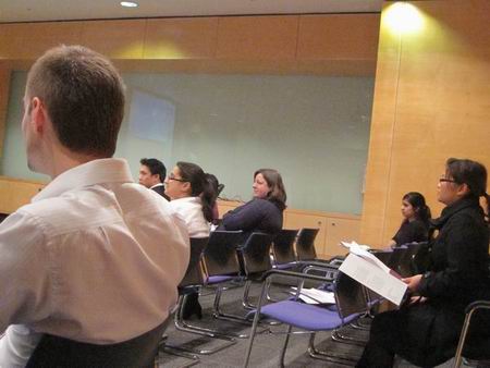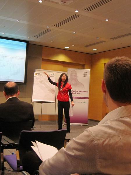 安永方面非常配合,特地花了500英镑请来了舞狮队,课前在安永大堂营造气氛。伦敦商务孔院的老师们,利用公司中午休息时间,给会计师们上一堂汉语和中国文化的体验课。要在一个小时之内吸引学生下决心选择学习一门外语,绝非易事。内容的选择和组织,本当颇费斟酌。但贺欢老师和卢红老师,显然驾轻就熟,原计划一个小时,这些试听者居然坐了一个半钟头,好在卢老师早有预案。学习常用短语,了解春节文化,还唱了一首中国歌《新年好》。学员十分认真,效果看来挺不错。