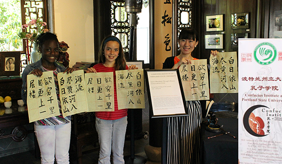 [!--allfrom--]| 波特兰州立大学孔子学院在兰苏园举办书法和茶艺文化角 | |