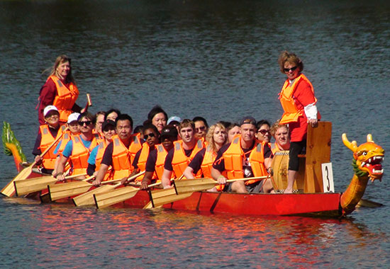 5月2日,美国佐治亚州奥古斯塔市一年一度的赛龙舟活动拉开帷幕,来自佐治亚瑞金斯大学孔子学院中文班、中医班的学员和佐治亚瑞金斯大学教授、职工以及孔子学院教师共20人受邀参加划船比赛。