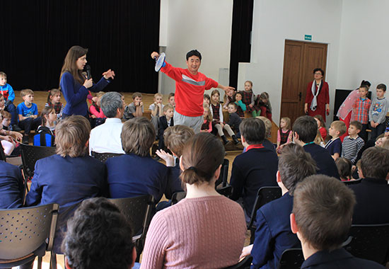 表演结束之际,孩子们踊跃向两位老师提出他们感兴趣的各种问题,互动场面热烈。有的同学走向前台一步一招地认真学起太极拳的基本动作及柔力球的基本打法。道克沙中学校长瑞格纳表示,柔力球运动是非常适合中小学生体育锻炼的运动方式,希望通过孔子学院的帮助在秋季学期开设相关的体育课程。