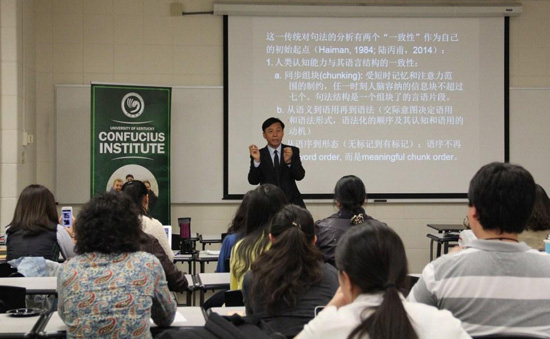 刘乐宁教授的报告有破有立,有整体有细节,立论严谨,论据充足,在一天时间内,为我们肯塔基大学孔子学院第一线的汉语教师们讲授了丰富的语言学本体知识,展示了理论语法与教学语法对接的实例。汉语教师牛艳青表示:“刘教授不愧是知名教授,学问扎实,深入浅出,今天学到了很多有用的知识,对教师专业素养的提高很有帮助。”