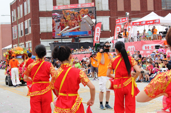 下午1点,UTSA孔子学院的花车带领游行队伍缓缓驶出Broadway大街。由中美学生和家长,及当地华人组成的腰鼓队身着中国红,腰挂响鼓,喜气洋洋的敲击出中国的节奏;紧随其后的舞龙队表演更是获得现场观众的阵阵欢呼,金龙戏珠,飞龙在天,如同它从遥远的东方赶来欢庆这场流动的盛宴。方阵所到之处都迎来了观众的欢呼和喝彩!