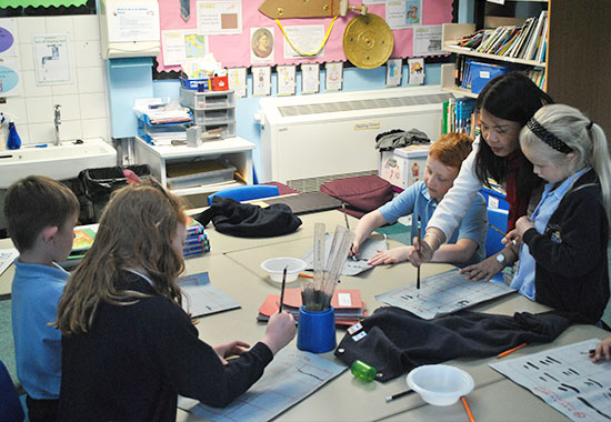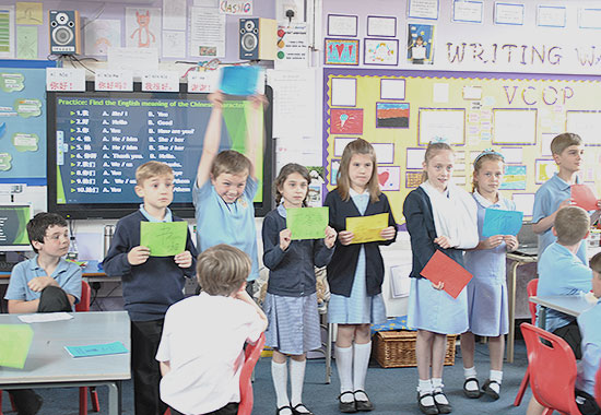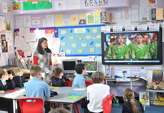 该孔子学院派驻课堂的教学负责人王恒讲师和汉办与英国教育委员会派去的刘剑老师,带领2位本土志愿者授课,从学前班至六年级,开设英国教育系统现代外语KS1和KS2性质的课程,并增设汉语兴趣课和文化课。
